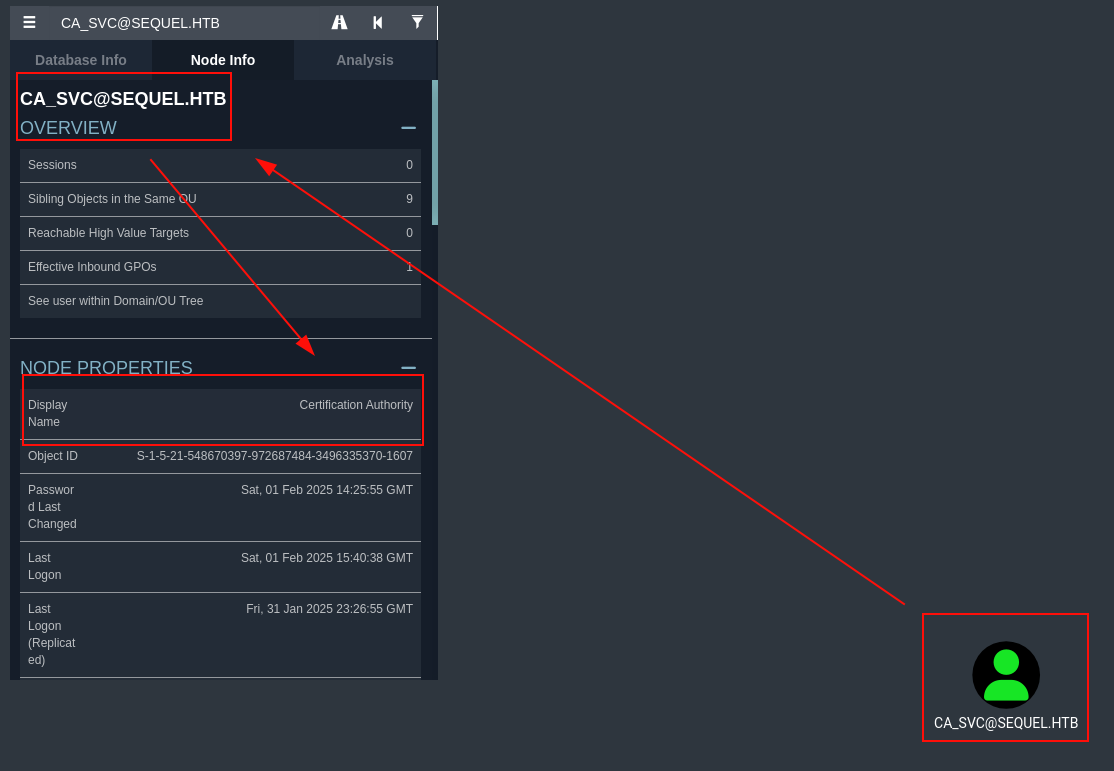 Subject : CN=sequel-DC01-CA, DC=sequel, DC=htb